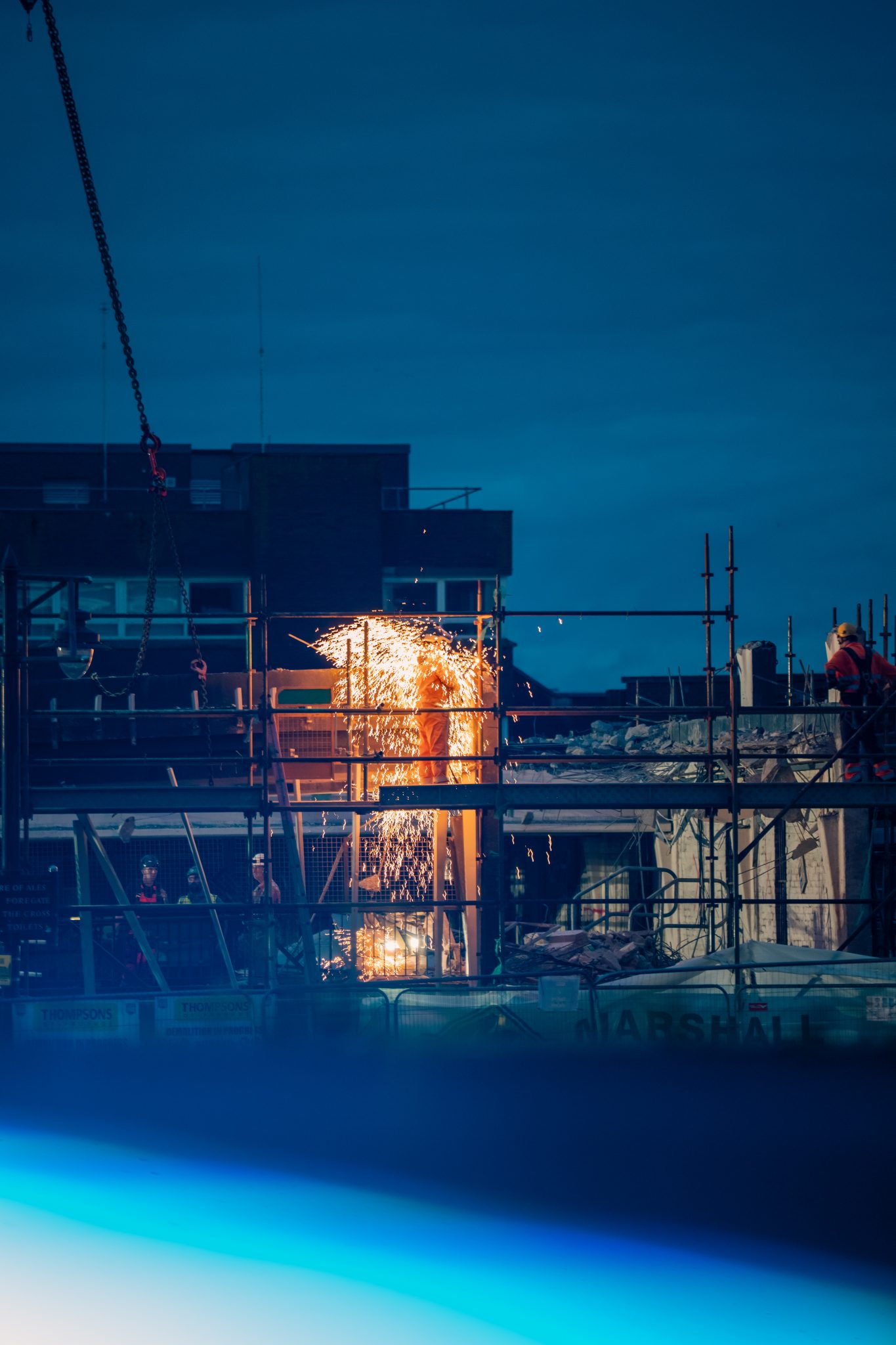 Fraser Kerr has taken photos of the area around the 1970s car park since 2022 and was especially interested in the light at the Foregate shops which is now changed forever. In September 2024, when the contractors arrived, he started recording the demolition in more detail documenting key moments of the work such as the removal of the clock and Jack Faulds Sloan’s horse sculpture (the Quadriga).