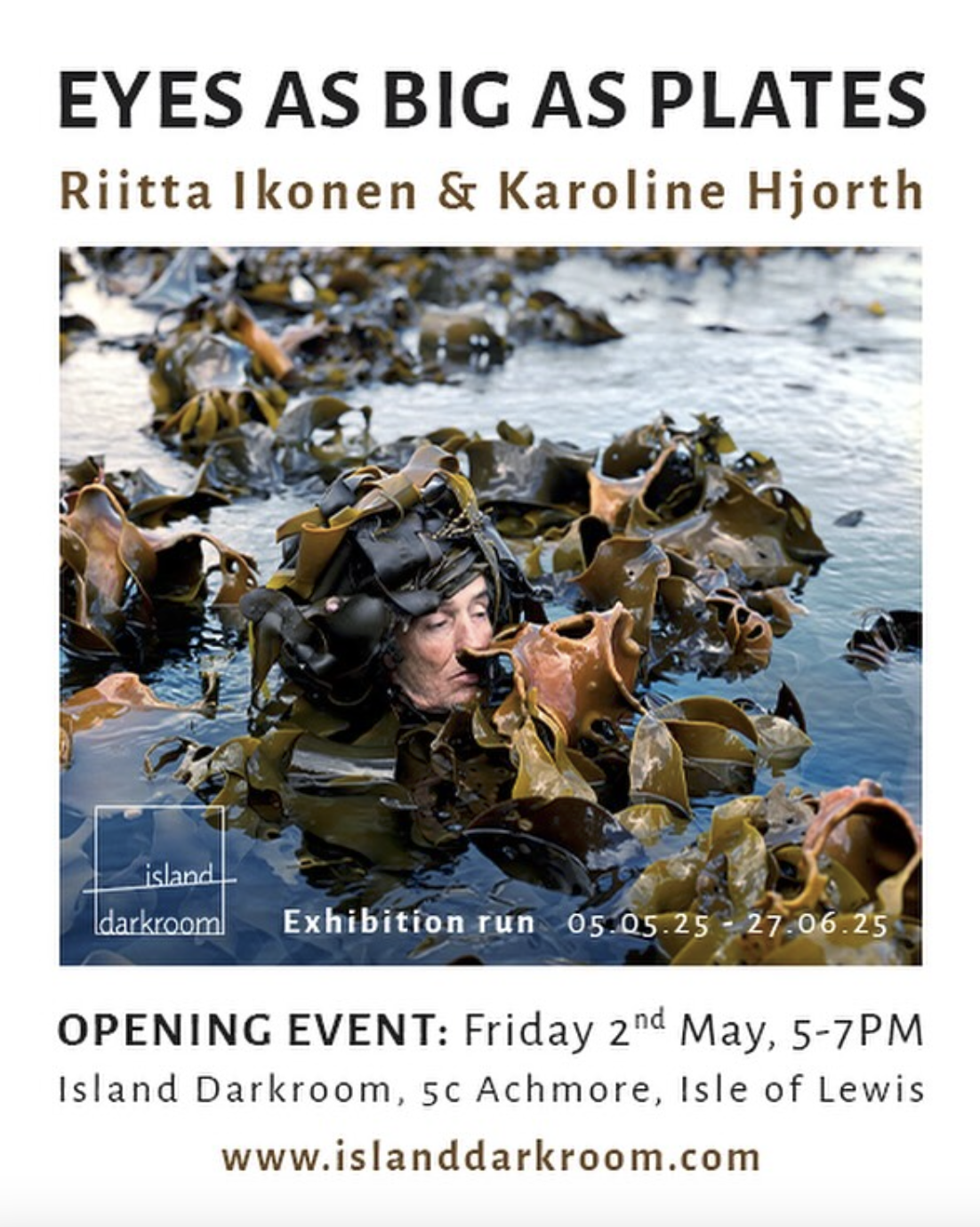 The collaborative project ‘Eyes as Big as Plates’, with Karoline Hjorth advocates for interdisciplinary collaboration for actionable change and this exhibition at Island Darkroom presents some of the portraits shot on the Isle of Lewis in 2019. The Hebridean portraits can be found in the duo’s second book while duo is working on a third book.